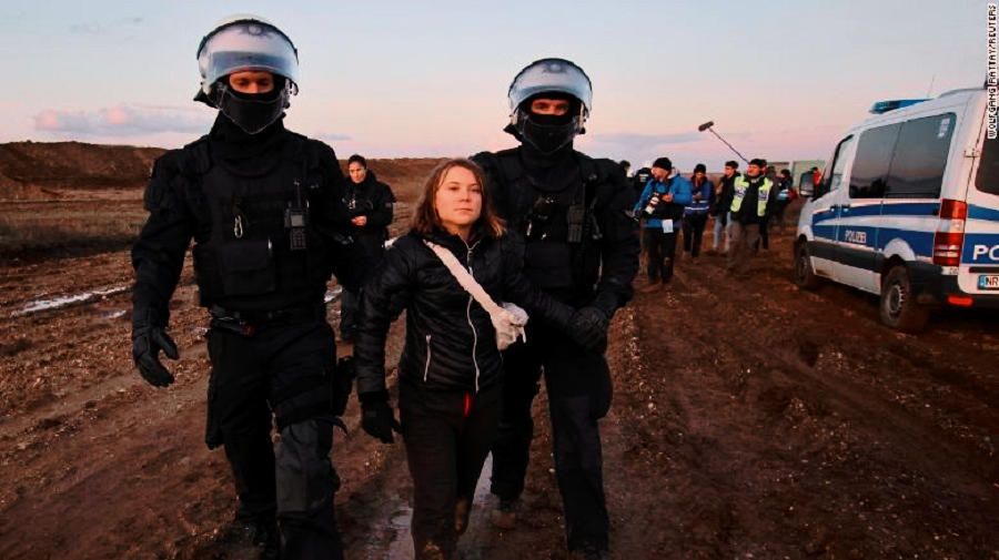 La joven sueca ambientalista fue desalojada junto a otro grupo de manifestantes.
