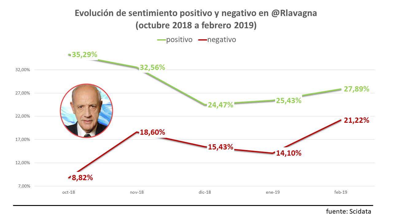 Al analizar la evolución del sentimiento positivo y negativo en torno a @RLavagna observamos este fenómeno.