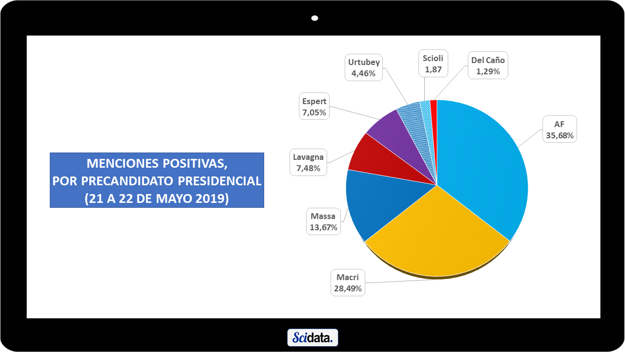 En este plano de análisis, el mandatario alcanzó 5 millones 730 mil cuentas, seguido por Massa con 3 millones 35 mil cuentas y Lavagna con 2 millones 650 mil.